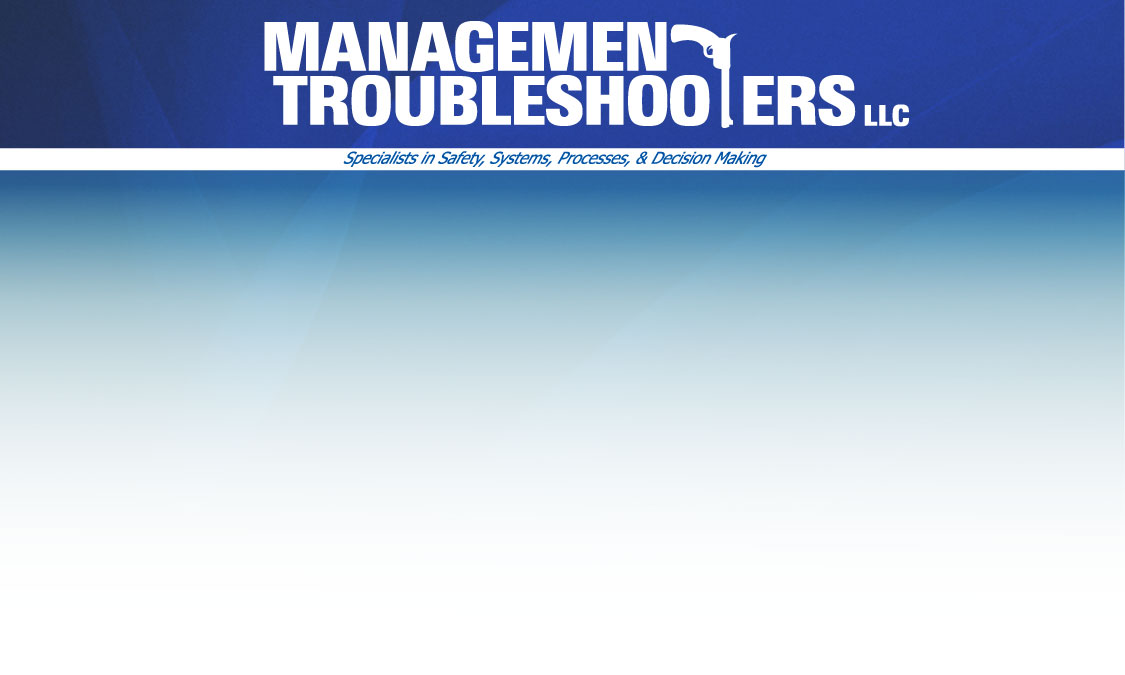 Management Troubleshooters, LLC, provides consulting services related to improving the capabilities of all sizes of organizations, both for-profit and not-for-profit. Our mission is to equip organizations in any industry to perform at their maximum capability, focused on safe, reliable, sustainable operations. |